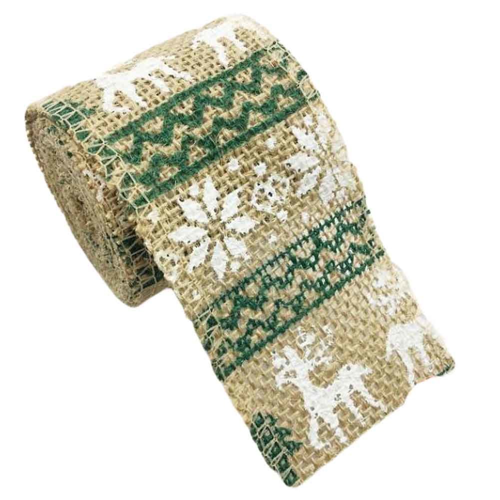 4 Yards Lovely Elk Jute Twine Burlap Ribbon for DIY Crafts Christmas Party Decor Gift Wrapping, 60mm Wide