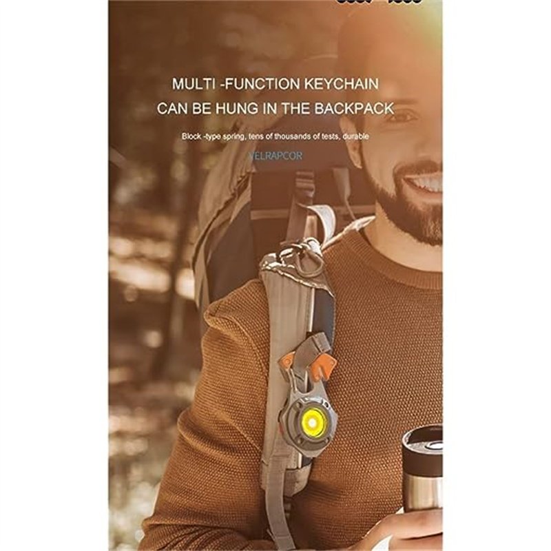 Versatile Tool Set: Equipped with 2 screwdrivers, 1 Igniter, rope cutter, bottle opener, wrench, and whistle, this COB keychain light is a true multi-tool marvel. Ideal for fishing, camping, emergency roadside situations, and more.