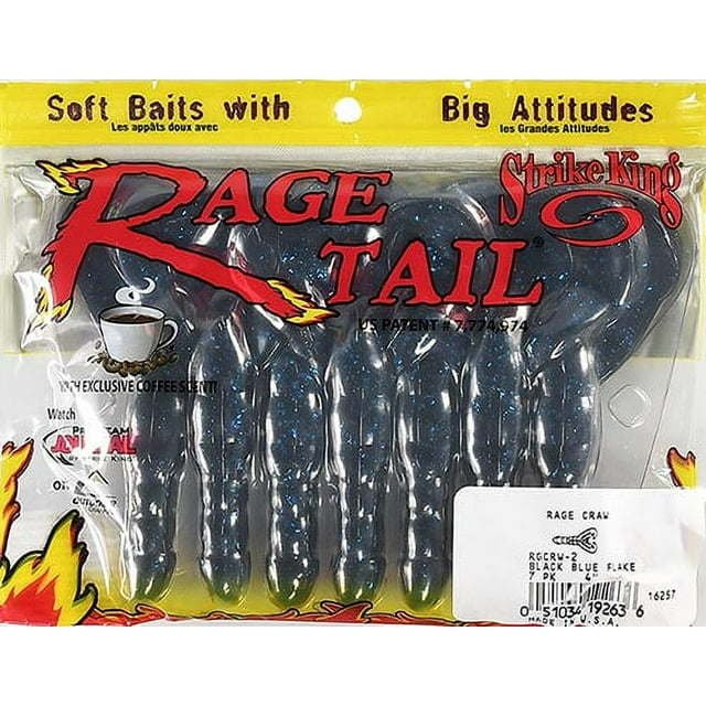 The Strike King Rage Craw soft bait fishing lure is a 4 inch soft plastic craw engineered like no other soft plastic. The big difference? The claws move with lots of action! Each Rage Tail lure has a unique and exclusive tail design and is engineered like no other soft plastic bait. Each is designed with a specific purpose and uses customized hi-grade plastics for superior action. The Rage Craw is the most action packed Craw design on the market. With the slightest movement of the rod tip, the claws start flapping back and forth and create terrific action and vibration in the water. T